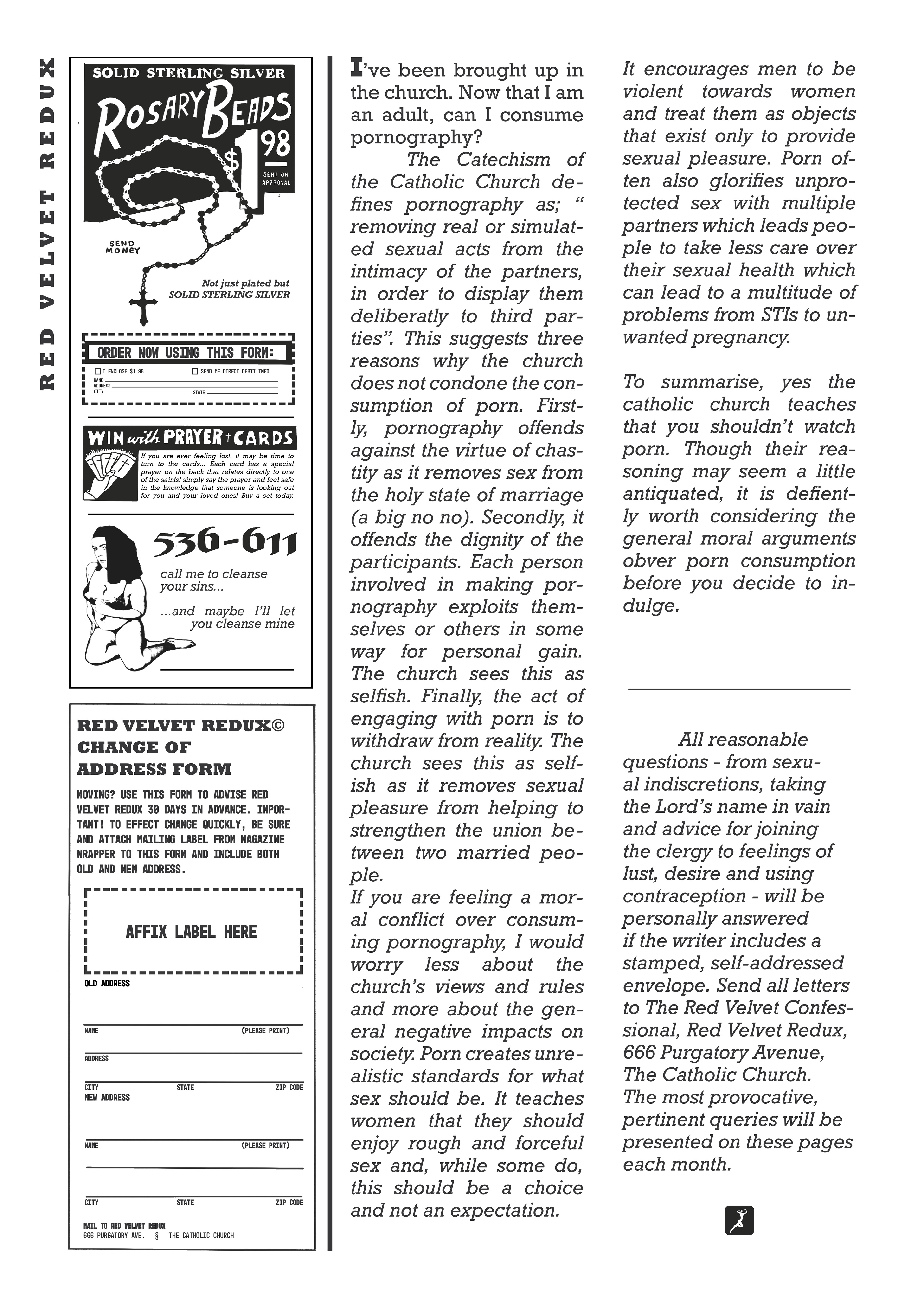Red Velvet Redux is an exploration of female sexuality and the catholic faith through thr medium of a Playboy inspired publication.